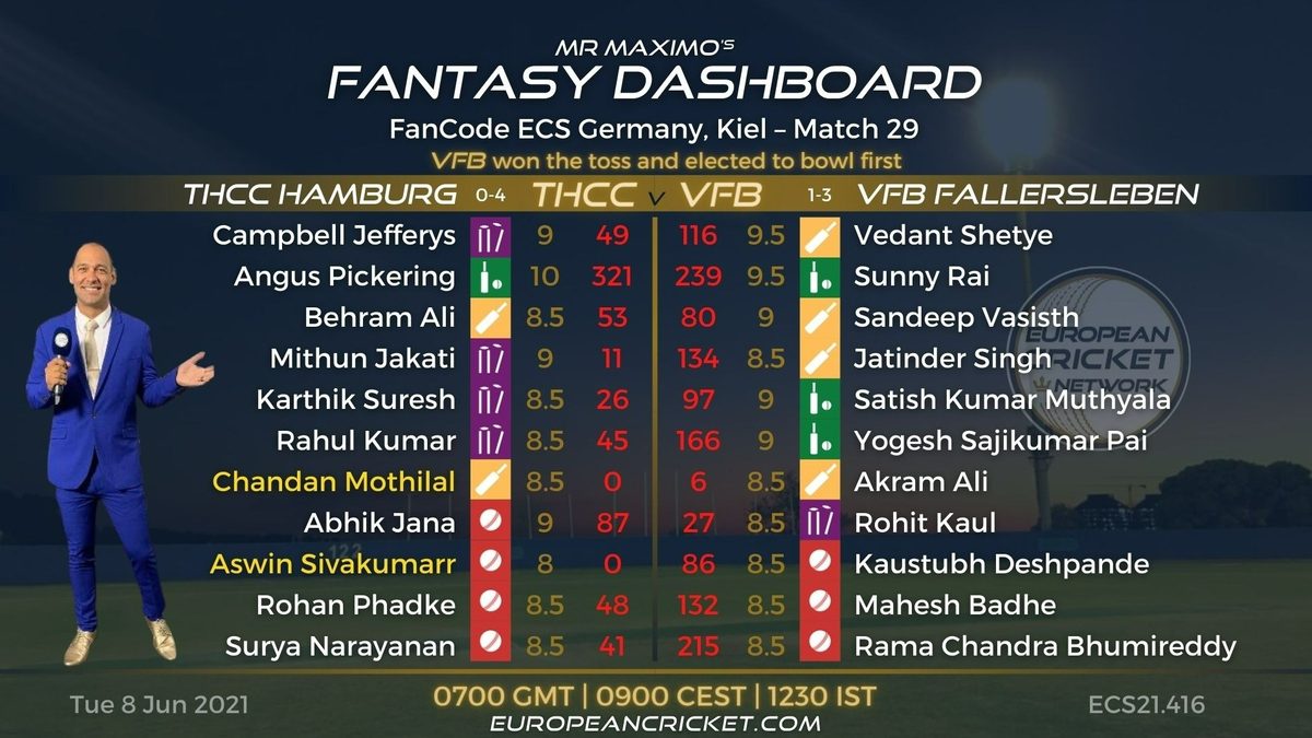 Vedant Shetye, batting all-rounder, can score quick runs, will open the innings for VFB, scored an unbeaten 41 in the first match against KSV, joint top scorer for VFB with 67 runs from four matches.
