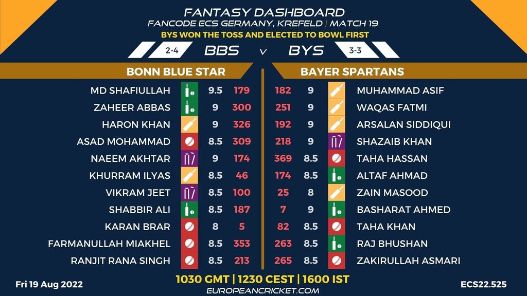 MATCH 19 (ECS22.525) BONN BLUE STAR (BBS) v BAYER SPARTANS (BYS) 1030 GMT | 1230 CEST | 1600 IST