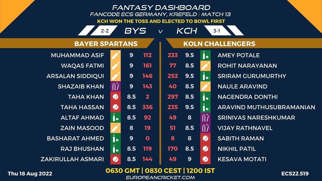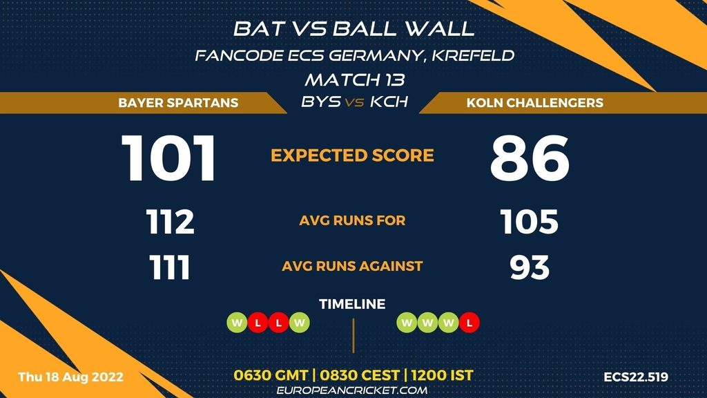 MATCH 13 (ECS22.519) BAYER SPARTANS (BYS) v KOLN CHALLENGERS (KCH) 0630 GMT | 0830 CEST | 1200 IST