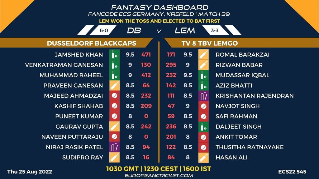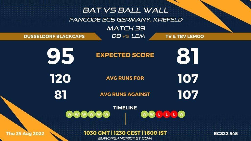 MATCH 39 (ECS22.545) DUSSELDORF BLACKCAPS (DB) v TV & TBV LEMGO (LEM) 1030 GMT | 1230 CEST | 1600 IST