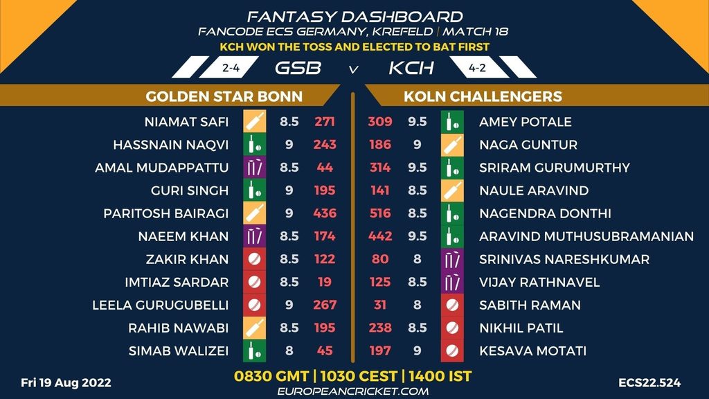 MATCH 18 (ECS22.524) GOLDEN STAR BONN (GSB) v KOLN CHALLENGERS (KCH) 0830 GMT | 1030 CEST | 1400 IST