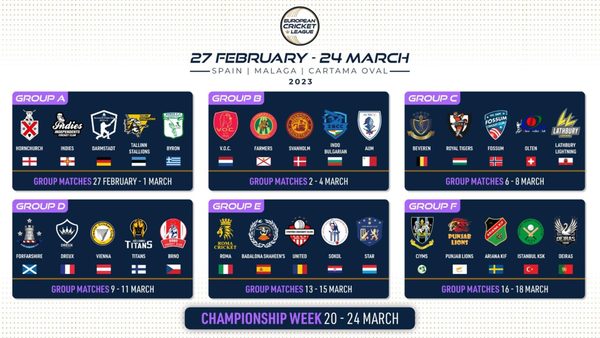 EUROPEAN CRICKET LEAGUE - ECL23 - DRAW Share Share Share on Facebook Share on Twitter Share on WhatsApp Copy Link Close