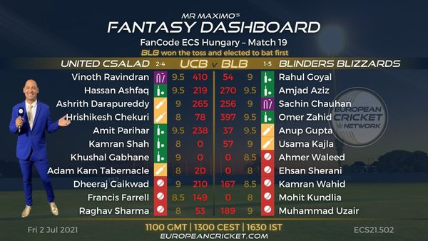 FANTASY Dashboard Match 19 - FanCode ECS Hungary Share Share Share on Facebook Share on Twitter Share on WhatsApp Copy Link Close