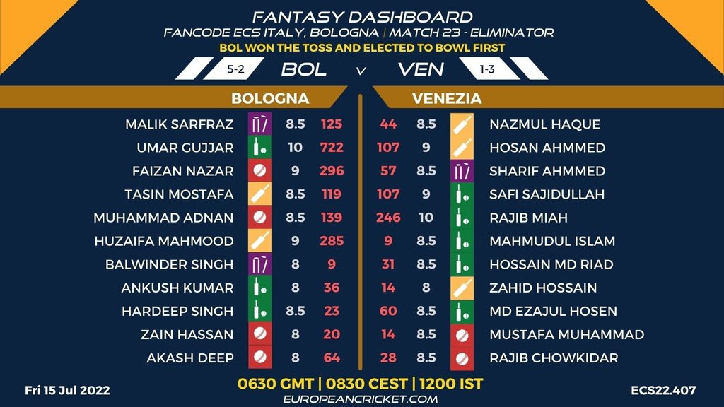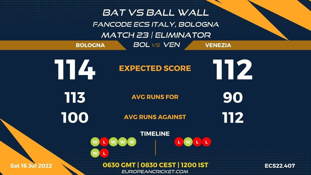 ELIMINATOR - MATCH 23 (ECS22.407) BOLOGNA (BOL) v VENEZIA (VEN) 0630 GMT | 0830 CEST | 1200 IST