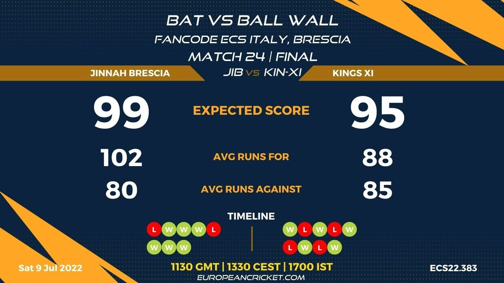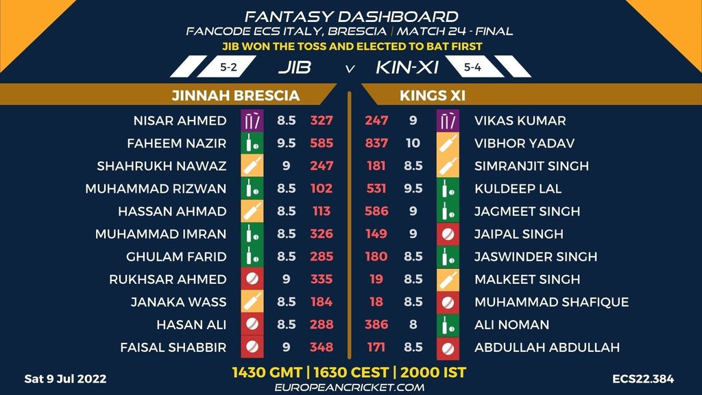FINAL - MATCH 24 (ECS22.384) JINNAH BRESCIA (JIB) v KINGS XI (KIN-XI) 1430 GMT | 1630 CEST | 2000 IST