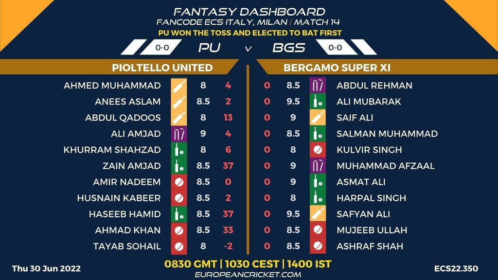 MATCH 14 (ECS22.350) PIOLTELLO UNITED (PU) v BERGAMO SUPER XI (BGS) 0830 GMT | 1030 CEST | 1400 IST
