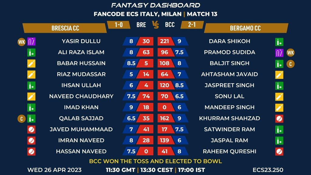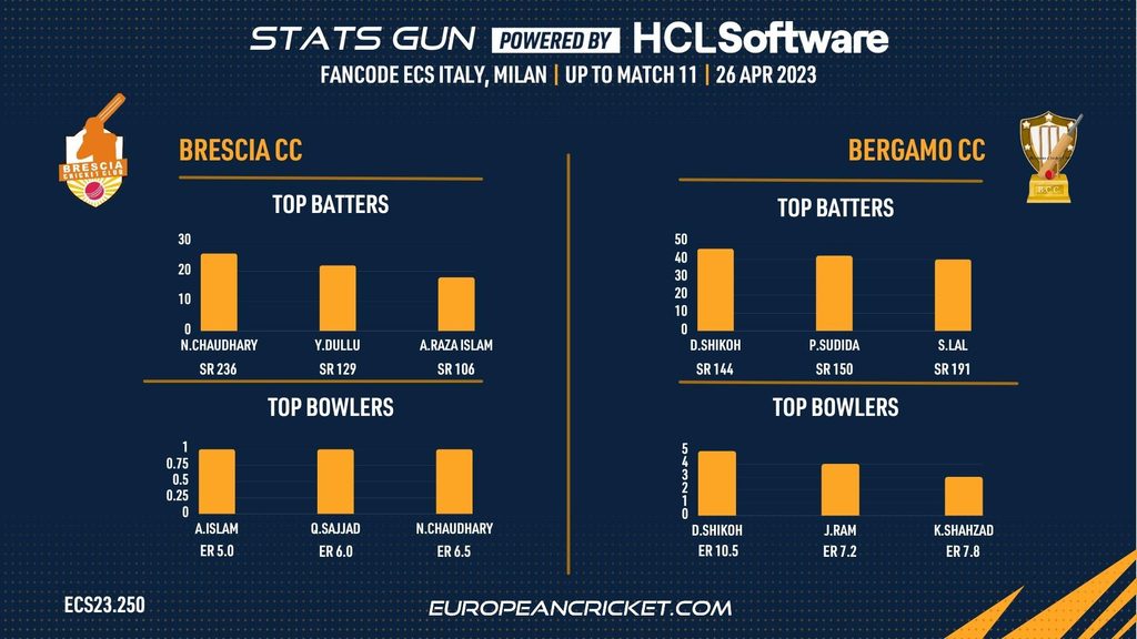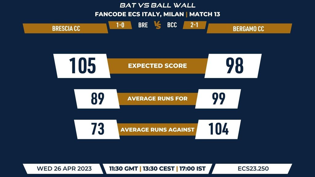 MATCH 13 (ECL23.250) BRESCIA CC (BRE) vs BERGAMO CC (BCC) 1130 GMT | 1330 CEST | 1700 IST