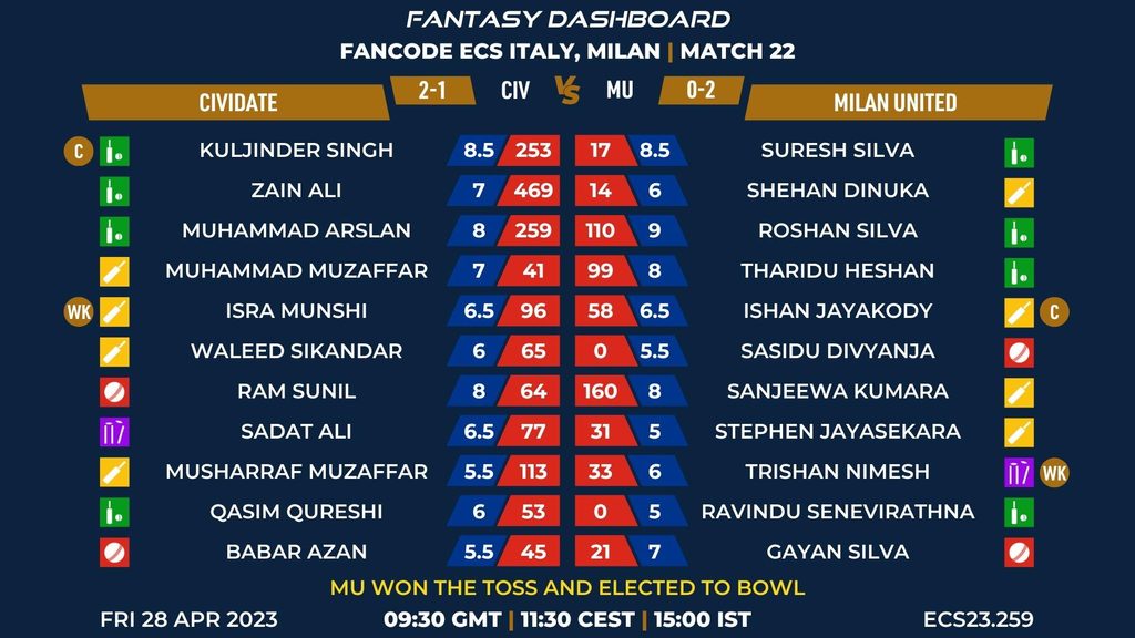 MATCH 22 (ECL23.259) CIVIDATE (CIV) vs MILAN UNITED (MU) 0930 GMT | 1130 CEST | 1500 IST