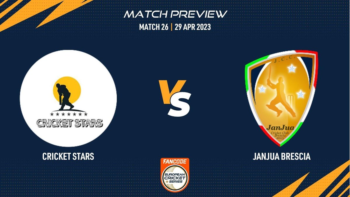 MATCH 26 (ECL23.263) CRICKET STARS (CRS) vs JANJUA BRESCIA (JAB) 0730 GMT | 0930 CEST | 1300 IST