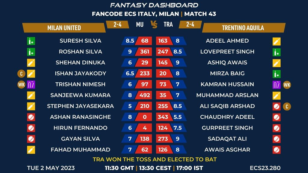 MATCH 43 (ECL23.280) MILAN UNITED (MU) vs TRENTINO AQUILA (TRA) 1130 GMT | 1330 CEST | 1700 IST