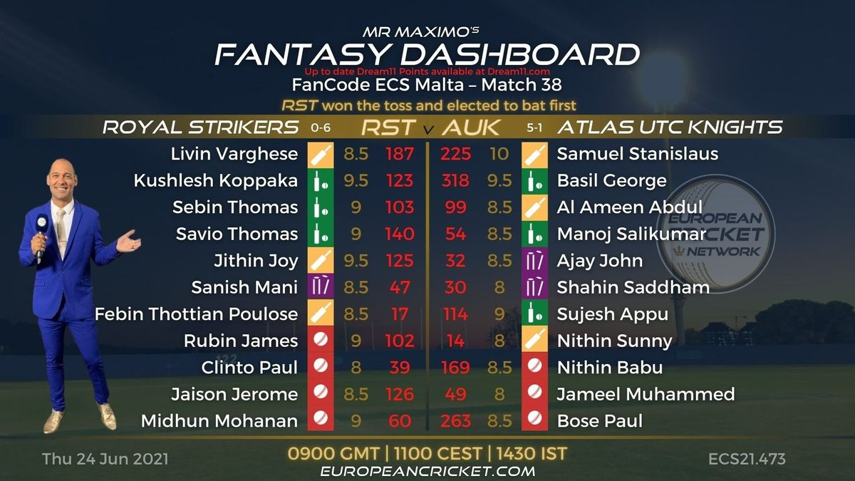 Livin Varghese, RHB, top scorer for Royal Strikers in 2020 summer league in Malta, has racked up 104 runs from six innings top scoring for RST.