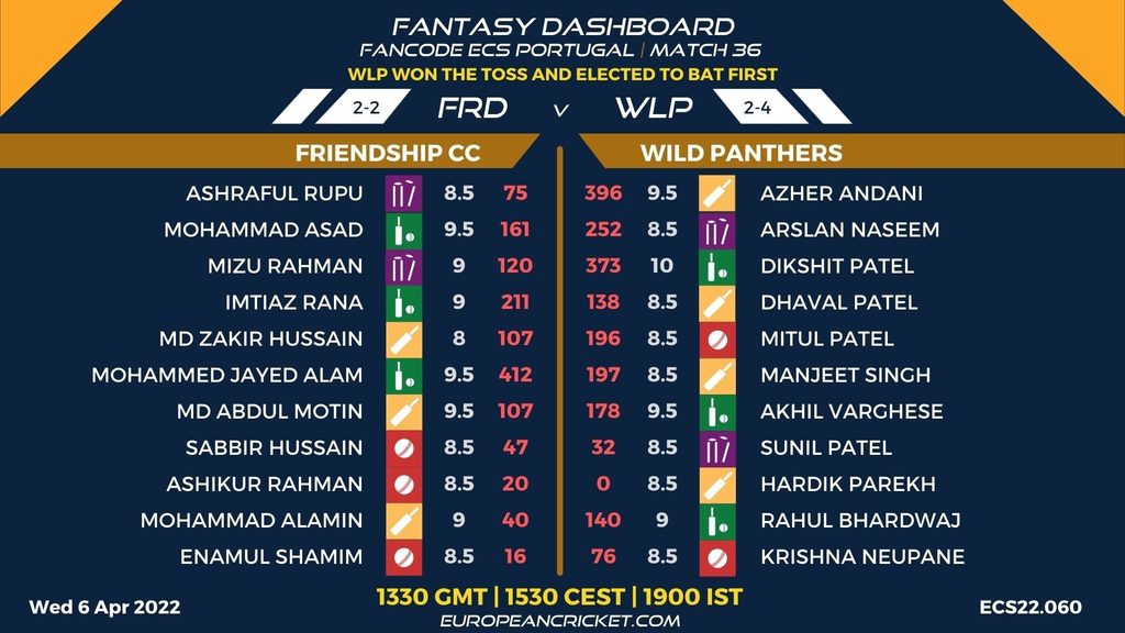 MATCH 36 (ECS22.060) FRIENDSHIP CC (FRD) v WILD PANTHERS (WLP) 1330 GMT | 1530 CEST | 1900 IST