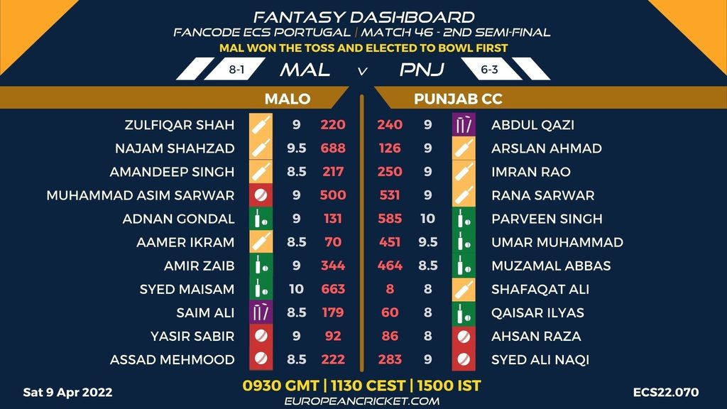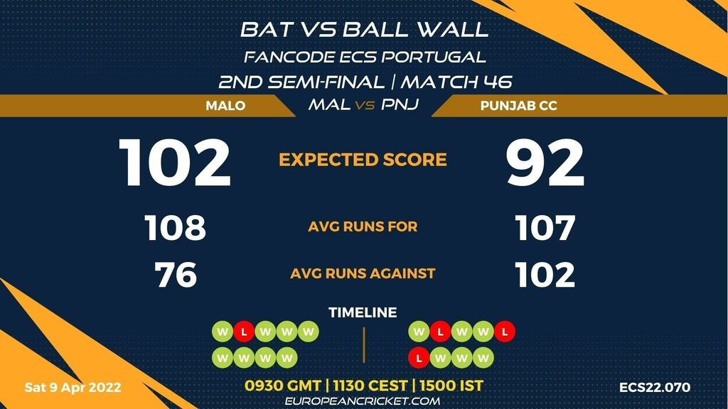 2ND SEMI-FINAL - MATCH 46 (ECS22.070) MALO (MAL) v PUNJAB CC (PNJ) 0930 GMT | 1130 CEST | 1500 IST