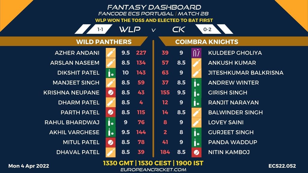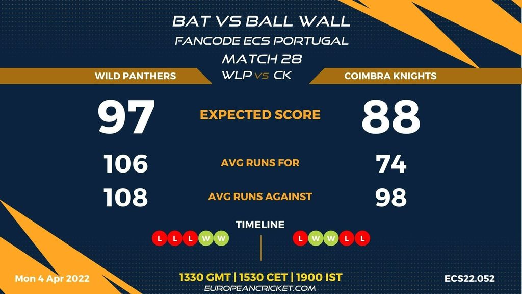 MATCH 28 (ECS22.052) WILD PANTHERS (WLP) v COIMBRA KNIGHTS (CK) 1330 GMT | 1530 CET | 1900 IST