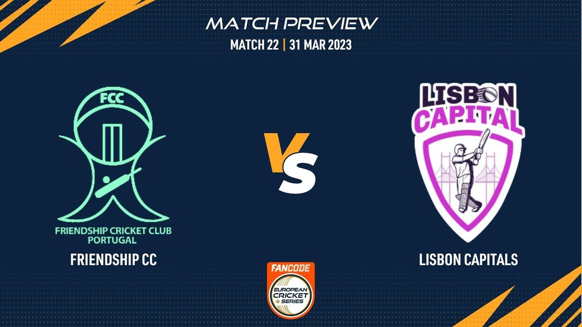 MATCH 22 (ECL23.130) FRIENDSHIP CC (FRD) vs LISBON CAPITALS (LCA) 0930 GMT | 1130 CEST | 1500 IST