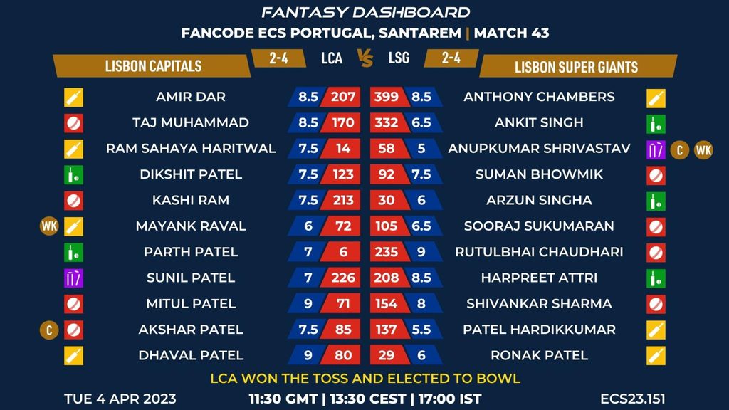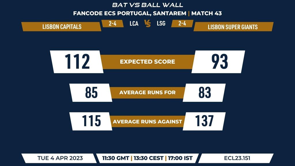 MATCH 43 (ECL23.151) LISBON CAPITALS (LCA) vs LISBON SUPER GIANTS (LSG) 1130 GMT | 1330 CEST | 1700 IST
