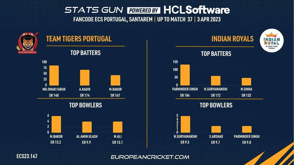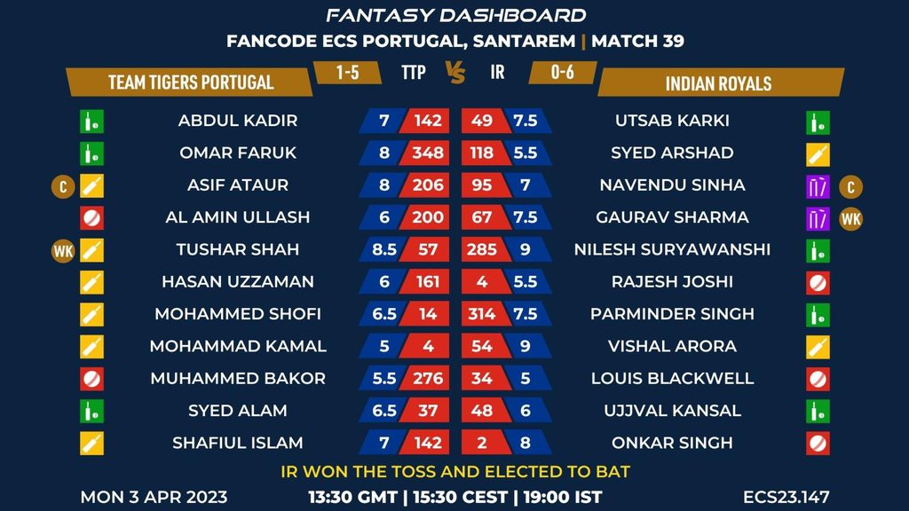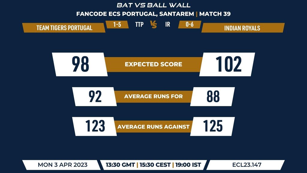 MATCH 39 (ECL23.147) TEAM TIGERS PORTUGAL (TTP) vs INDIAN ROYALS (IR) 1330 GMT | 1530 CEST | 1900 IST