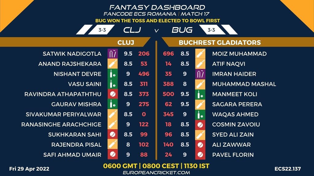 MATCH 17 (ECS22.137) CLUJ (CLJ) v BUCHAREST GLADIATORS (BUG) 0600 GMT | 0800 CEST | 1130 IST