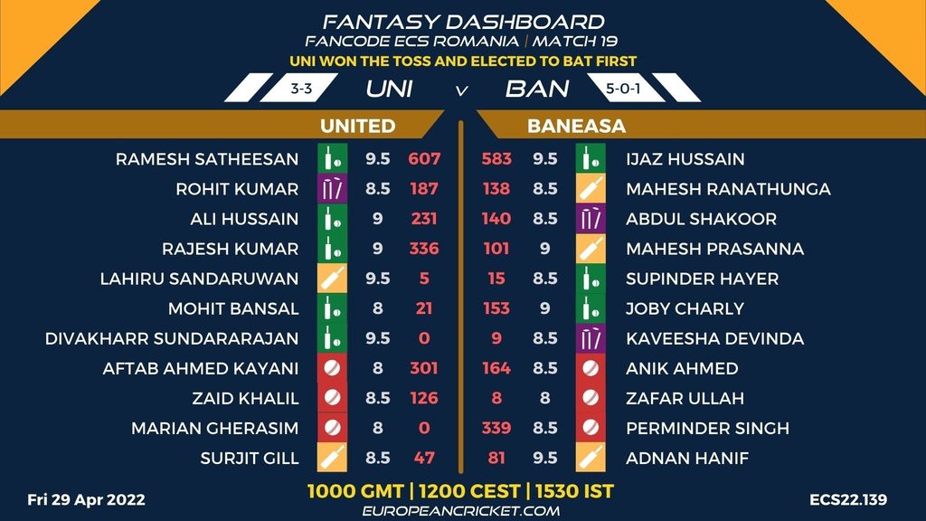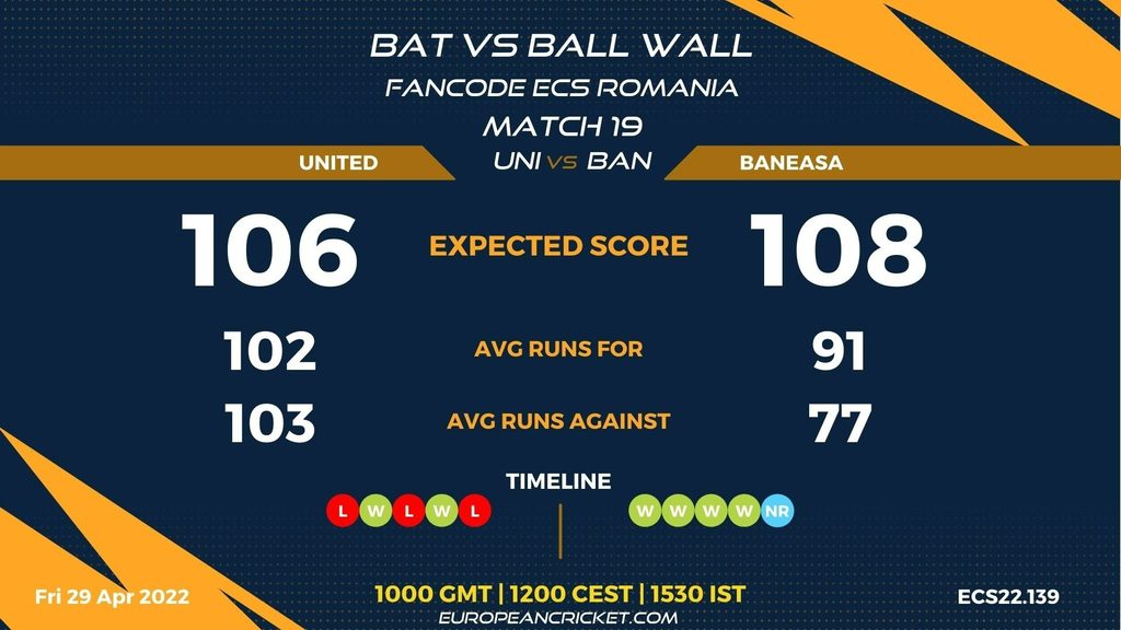 MATCH 19 (ECS22.139) UNITED (UNI) v BANEASA (BAN) 1000 GMT | 1200 CEST | 1530 IST