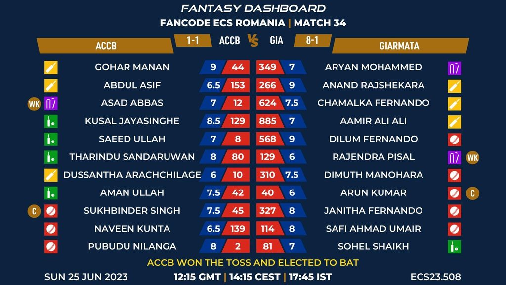 MATCH 34 (ECS23.508) ACCB (ACCB) vs GIARMATA (GIA) 12:15 GMT | 14:15 CEST | 17:45 IST