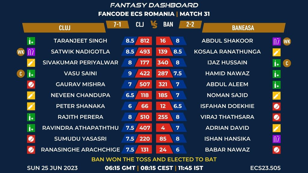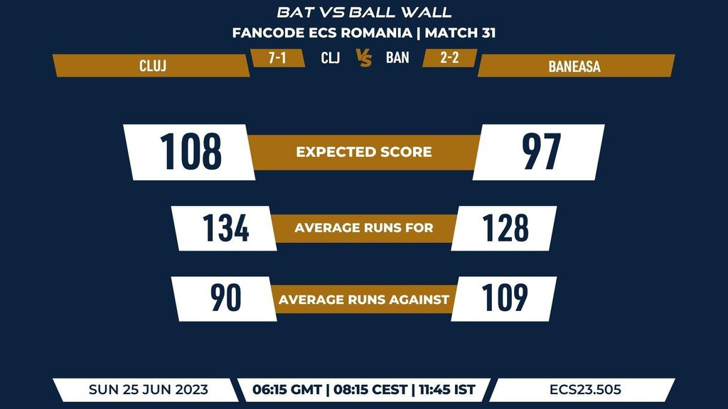 MATCH 31 (ECS23.505) CLUJ (CLJ) vs BANEASA (BAN) 06:15 GMT | 08:15 CEST | 11:45 IST
