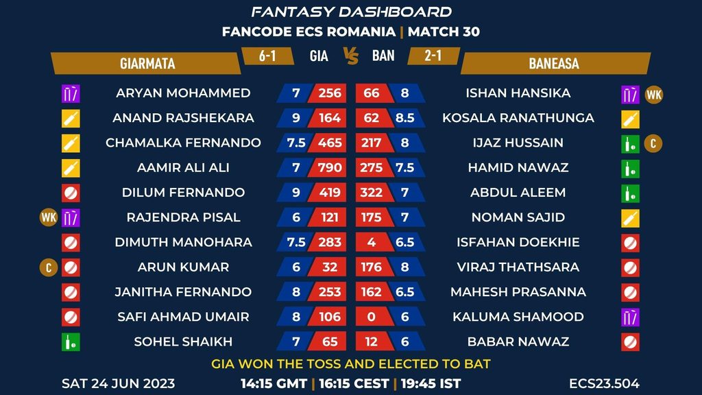 MATCH 30 (ECS23.504) GIARMATA (GIA) vs BANEASA (BAN) 14:15 GMT | 16:15 CEST | 19:45 IST