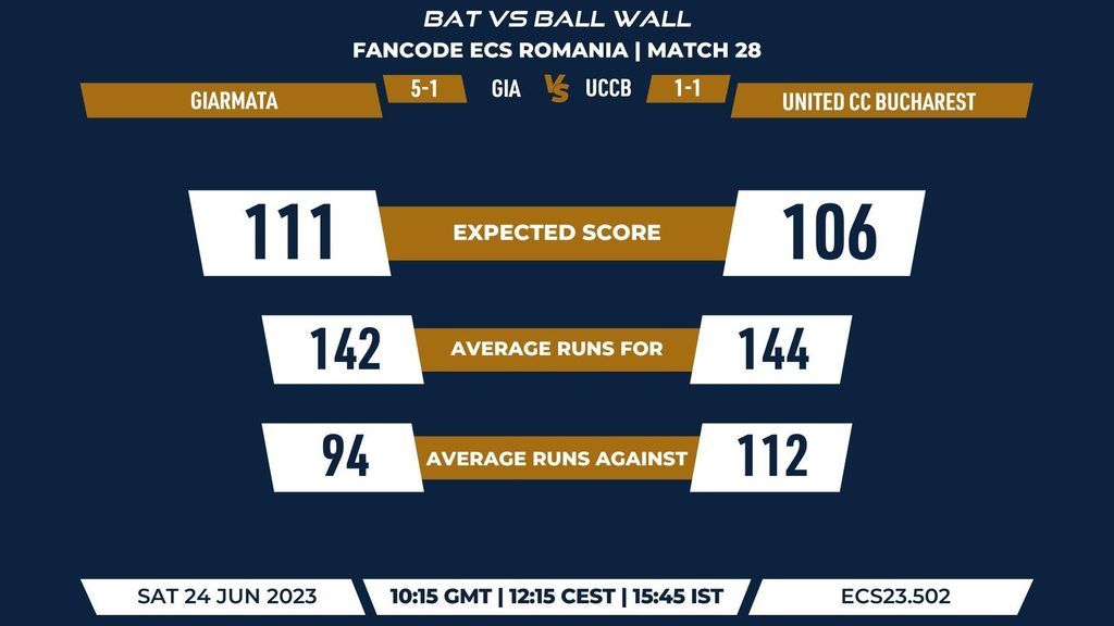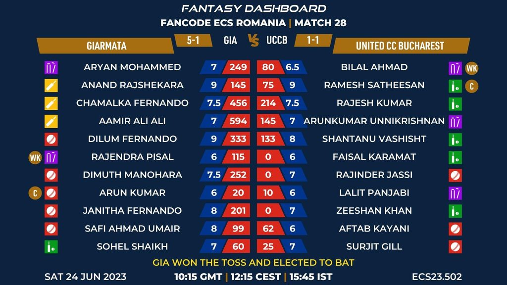 MATCH 28 (ECS23.502) GIARMATA (GIA) vs UNITED CC BUCHAREST (UCCB) 10:15 GMT | 12:15 CEST | 15:45 IST