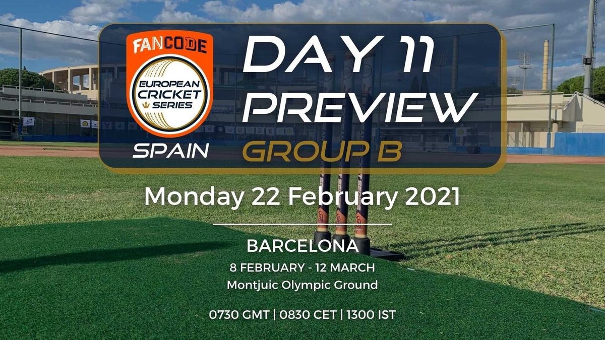 European Cricket Network live broadcasts five T10 matches on Day 11 of the FanCode ECS Spain, Barcelona on Monday 22 February.