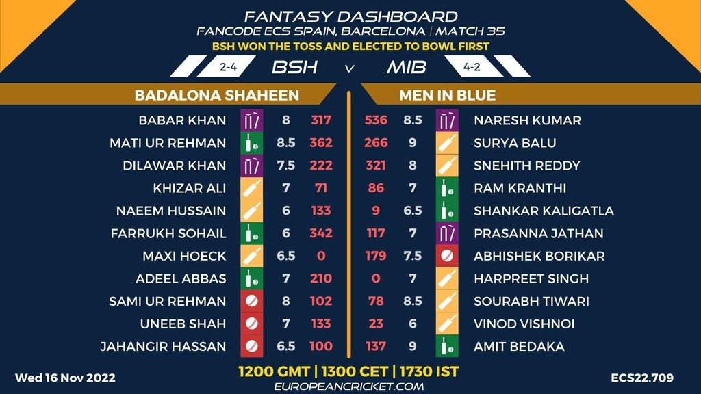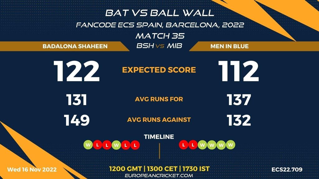 MATCH 35 (ECS22.709) BADALONA SHAHEEN (BSH) v MEN IN BLUE (MIB) 1200 GMT | 1300 CEST | 1730 IST
