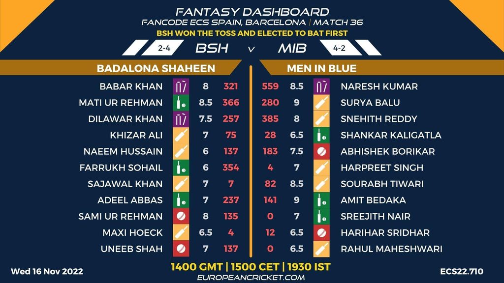 MATCH 36 (ECS22.710) BADALONA SHAHEEN (BSH) v MEN IN BLUE (MIB) 1400 GMT | 1500 CEST | 1930 IST