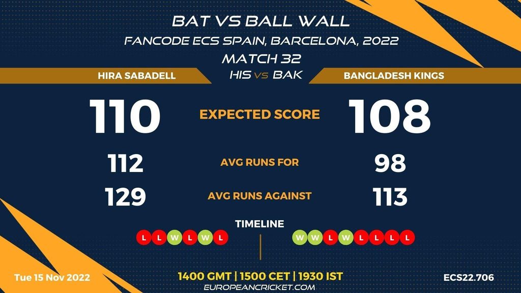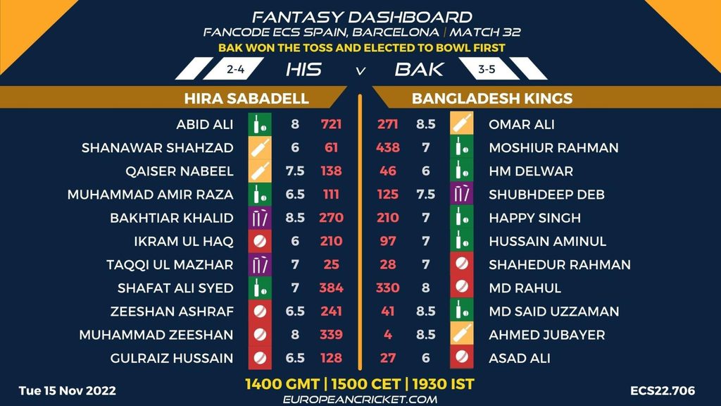 MATCH 32 (ECS22.706) HIRA SABADELL (HIS) v BANGLADESH KINGS (BAK) 1400 GMT | 1500 CEST | 1930 IST