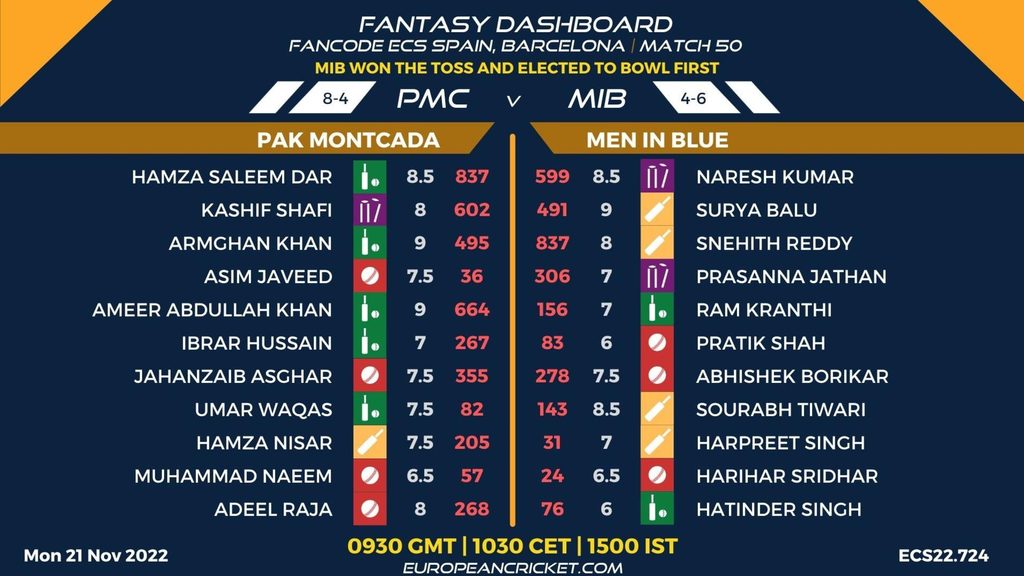 MATCH 50 (ECS22.724) BADALONA SHAHEEN (BSH) v MEN IN BLUE (MIB) 0930 GMT | 1030 CEST | 1500 IST
