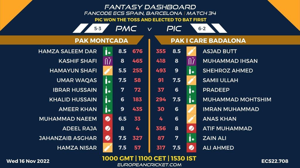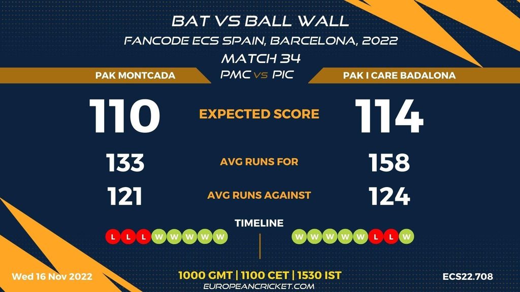 MATCH 34 (ECS22.708) PAK MONTCADA (PMC) v PAK I CARE BADALONA (PIC) 1000 GMT | 1100 CEST | 1530 IST