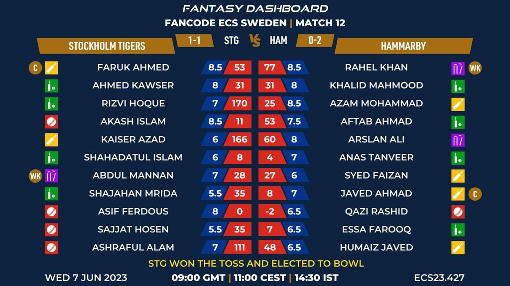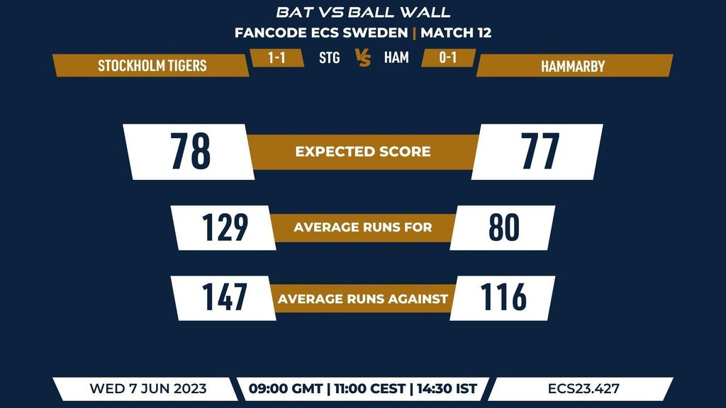 MATCH 12 (ECS23.427) STOCKHOLM TIGERS (STG) vs HAMMARBY (HAM) 09:00 GMT | 11:00 CEST | 14:30 IST