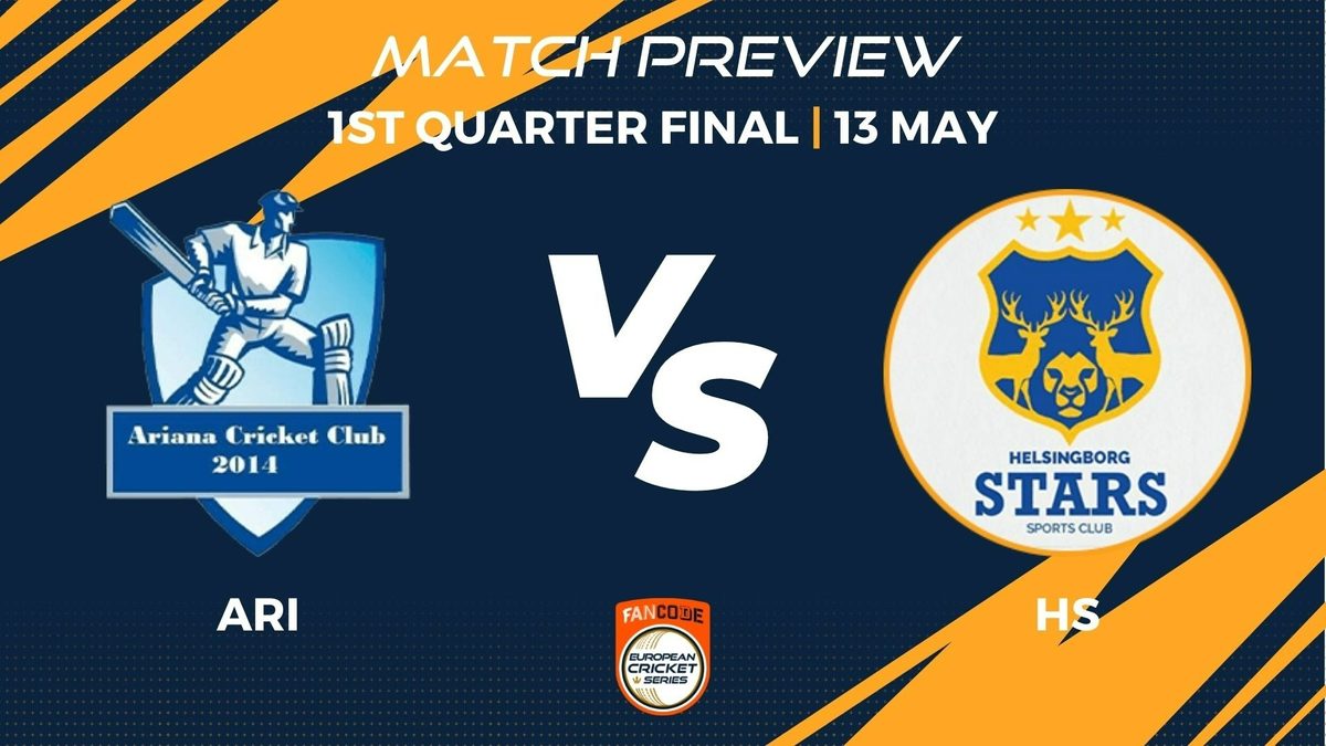 1ST QUARTER FINAL 1 - MATCH 41 (ECS22.185) ARIANA CC (ARI) v HELSINGBORG STARS (HS) 0700 GMT | 0900 CEST | 1230 IST