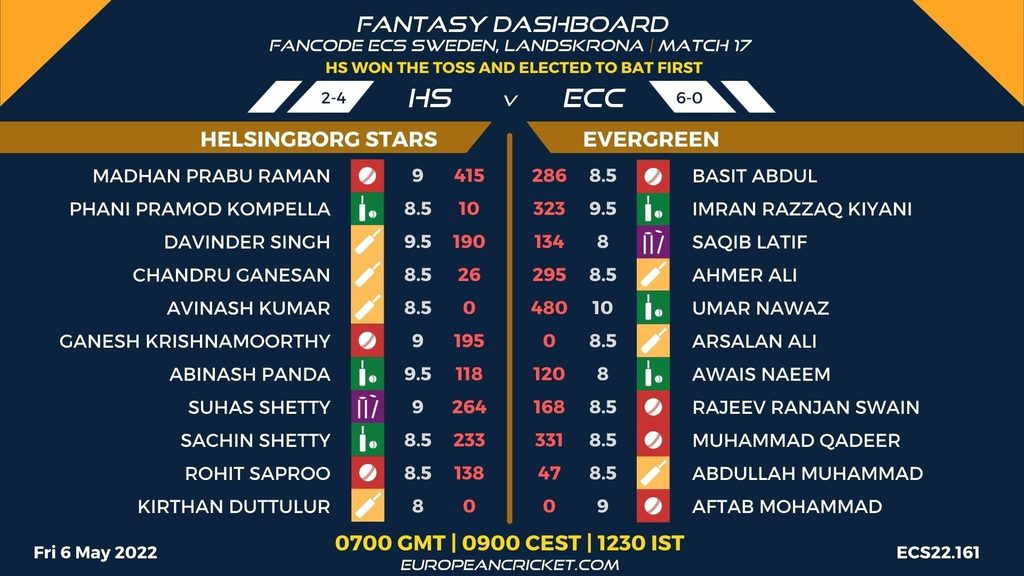MATCH 17 (ECS22.161) HELSINGBORG STARS (HS) v EVERGREEN (ECC) 0700 GMT | 0900 CEST | 1230 IST