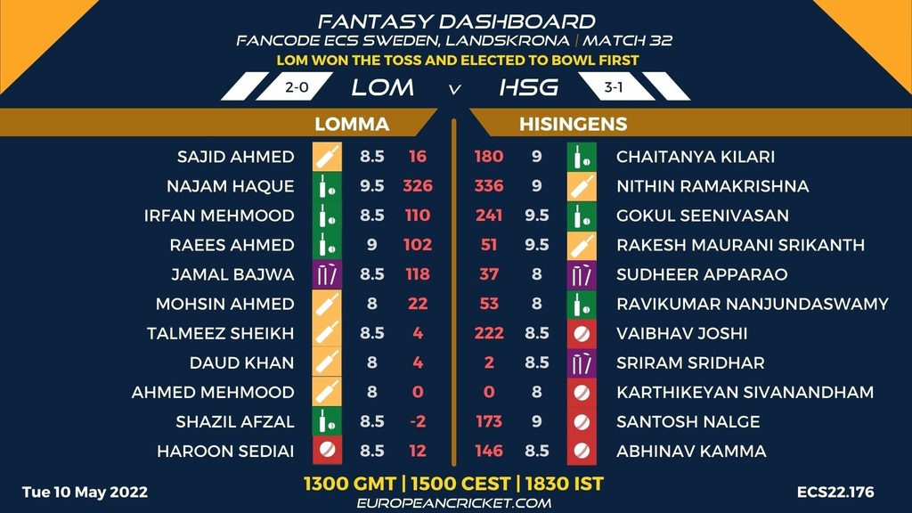 MATCH 32 (ECS22.176) LOMMA (LOM) v HISINGENS (HSG) 1300 GMT | 1500 CEST | 1830 IST