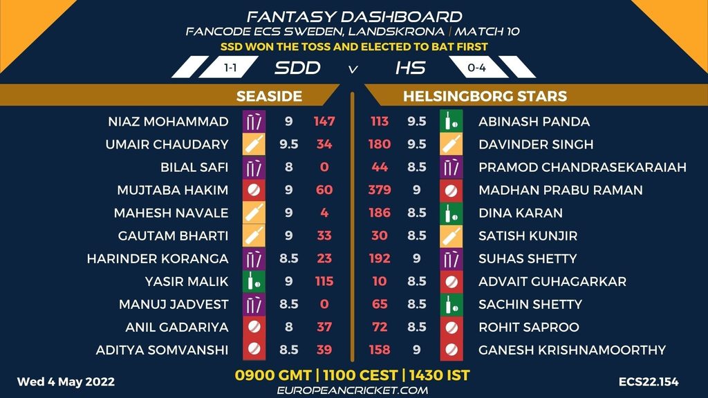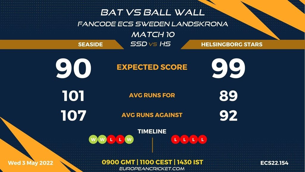 MATCH 10 (ECS22.154) SEASIDE (SSD) v HELSINGBORG STARS (HS) 0900 GMT | 1100 CEST | 1430 IST