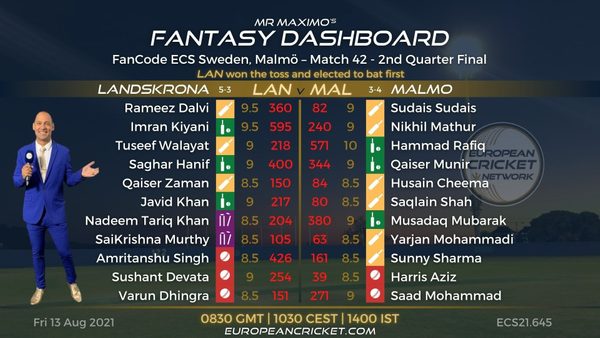 FANTASY Dashboard - 2nd Quarter Final - Match 42 - FanCode ECS Sweden Malmo Share Share Share on Facebook Share on Twitter Share on WhatsApp Copy Link Close