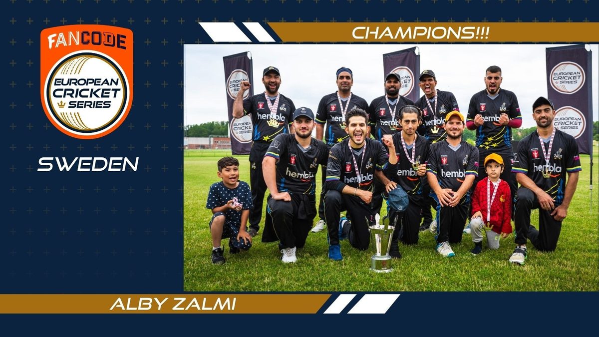 Alby Zalmi CF were crowned winners of Fancode ECS Sweden Stockholm after a thrilling three-wicket win over ECS newbies Huddinge in the Final on Saturday. Sent into field first, ALZ were all over the opposition, restricting HUD to 68 all out in 9.4 overs.