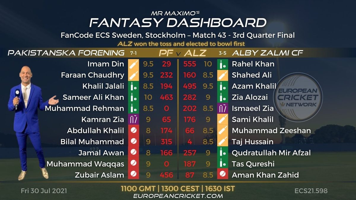 Sameer Ali Khan, MVP last term, is top scorer for PF racking up 149 runs in eight games and has picked up FIVE wickets as well.