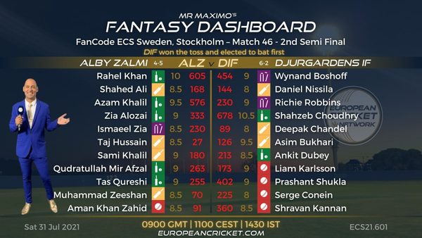 FANTASY Dashboard - 1st Semi Final - Match 45 - FanCode ECS Sweden Stockholm Share Share Share on Facebook Share on Twitter Share on WhatsApp Copy Link Close