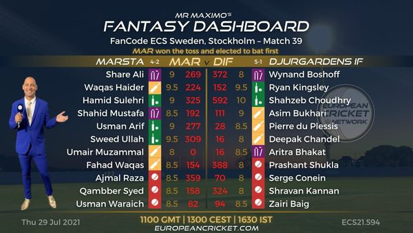 FANTASY Dashboard Match 39 - FanCode ECS Sweden Stockholm Share Share Share on Facebook Share on Twitter Share on WhatsApp Copy Link Close