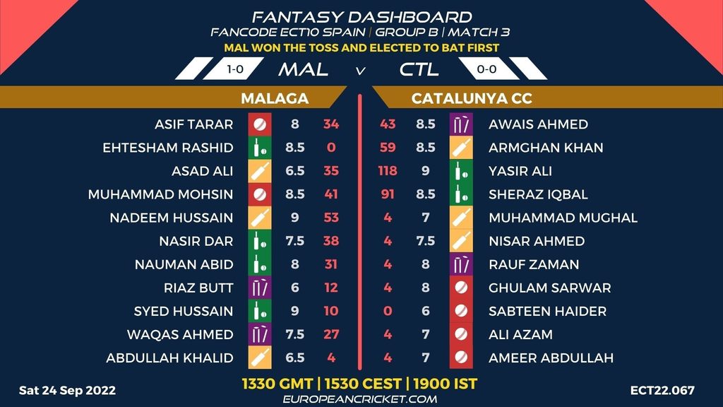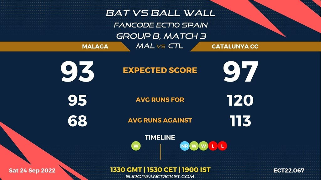 GROUP B, MATCH 3 (ECT22.067) MALAGA (MAL) v CATALUNYA CC (CTL) 1330 GMT | 1530 CEST | 1900 IST