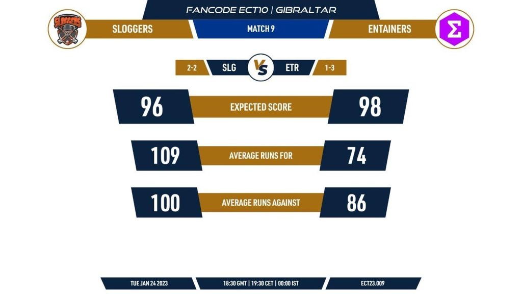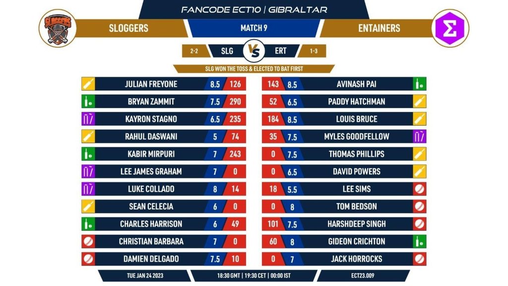 MATCH 9 (ECT23.009) SLOGGERS (SLG) v ENTAINERS (ETR) 1830 GMT | 1930 CEST | 0000 IST